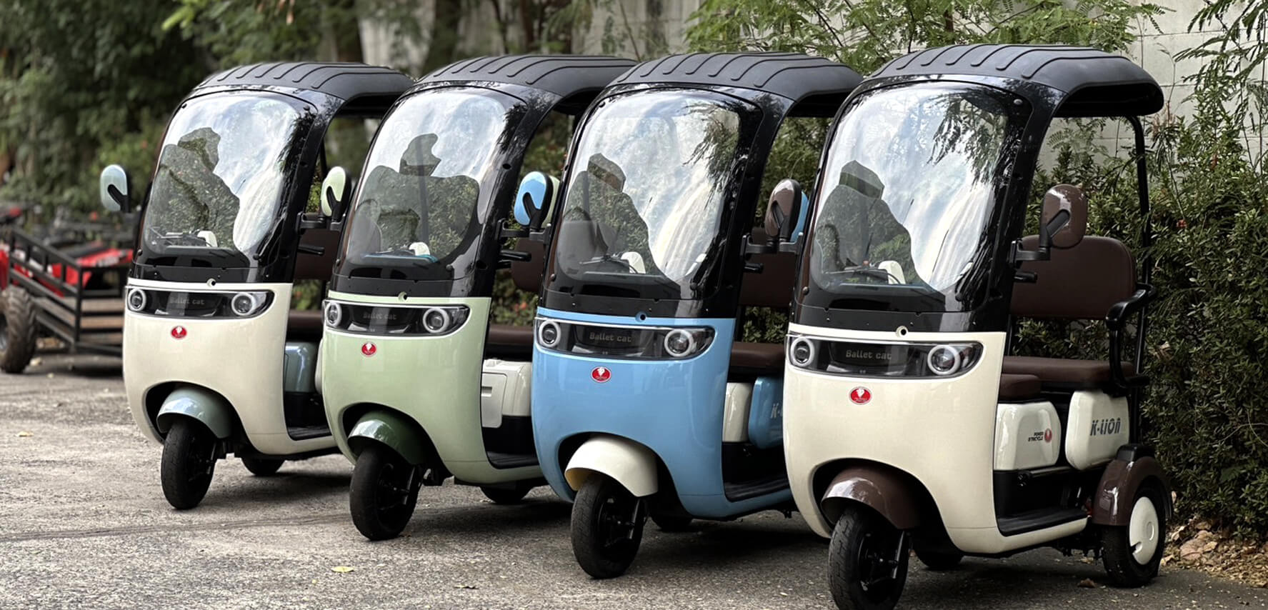 เมก้า สามล้อไฟฟ้ามีหลังคา ดีไซน์น่ารัก ขนาดกระทัดรัด พร้อมเบาะนั่งปรับได้ตามการใช้งาน เดินทางได้สูงสุด 2 ท่าน